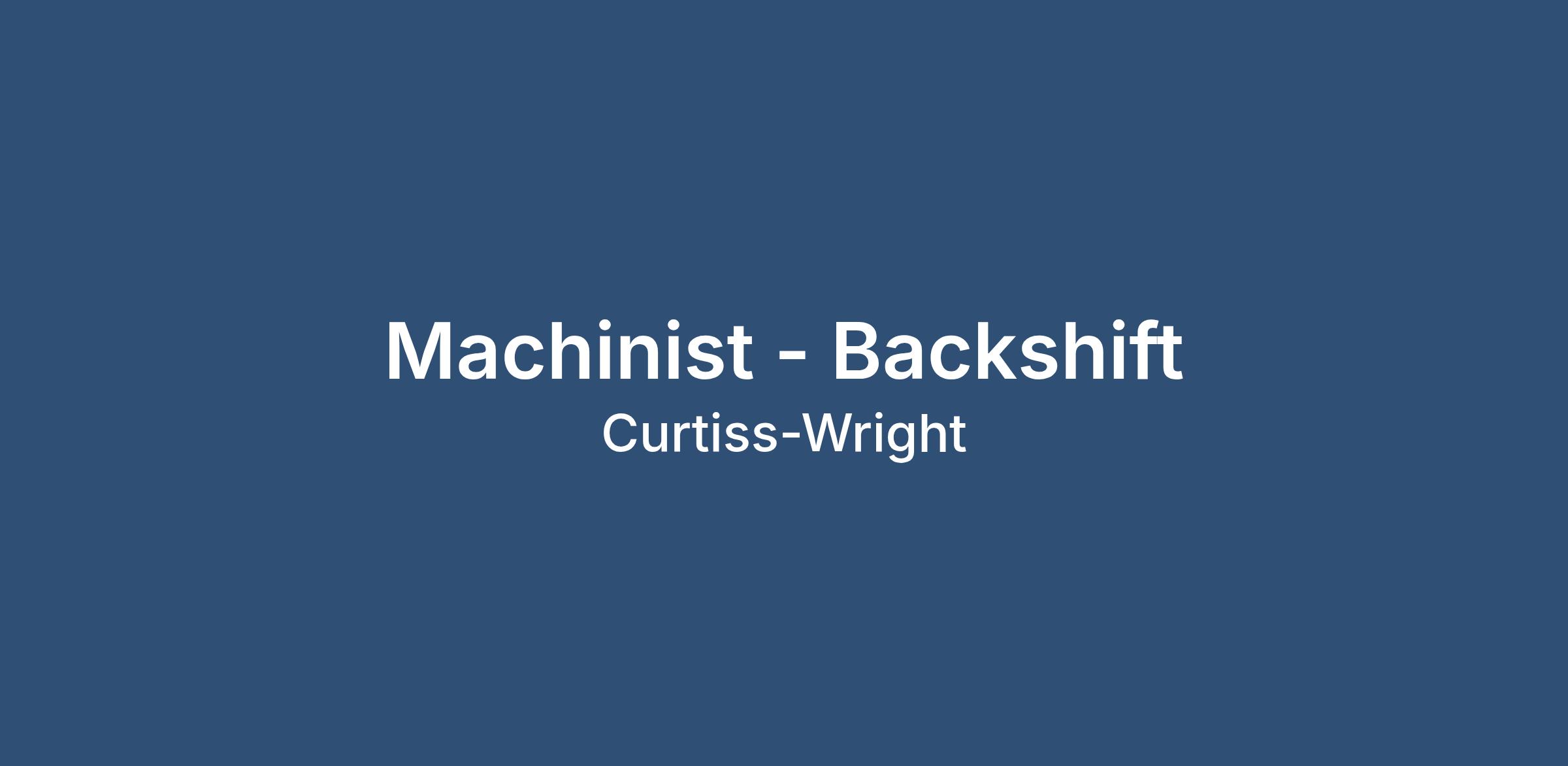 We are looking for a Machinists to join our Pittsburgh (Cheswick) location.