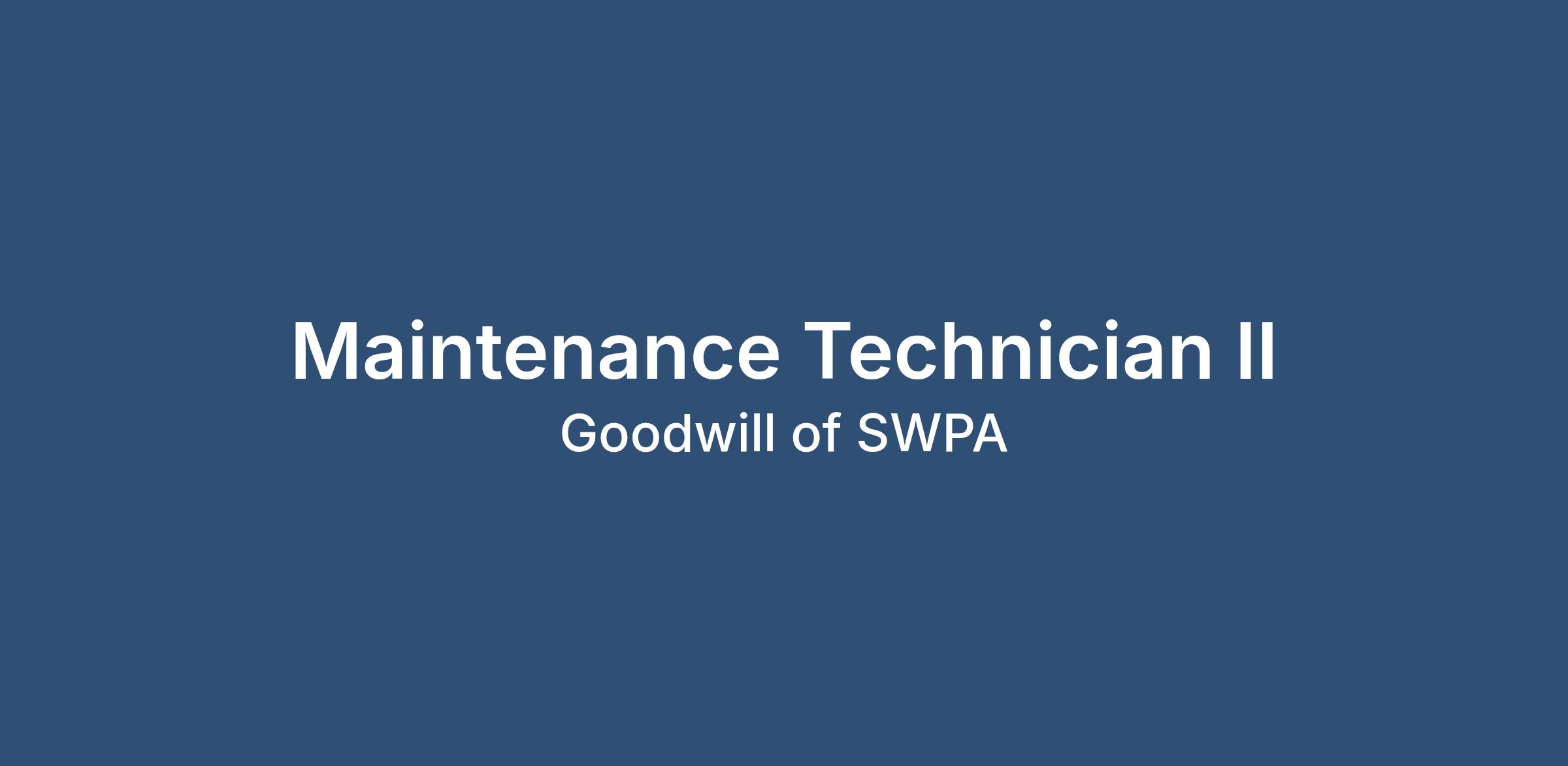 The Maintenance Technician II will perform routine building maintenance tasks for up to 15 facilities involving the skills of two or more fields to keep machines, mechanical equipment, or the structure of Goodwill facilities in excellent repair. Duties may involve, but are not limited to, repairing drywall, installing door handles, replacing toilets, running electrical wires, replacing ballasts, changing light bulbs, securing plywood, repairing concrete, fixing door closures, securing mirrors, filling potholes, and other general maintenance tasks. This position will require designated on call responsibilities. This position is expected to support Goodwill’s overall Mission by working with, mentoring or providing learning opportunities for clients/program participants. This position must have the ability to perform job duties with little supervision.