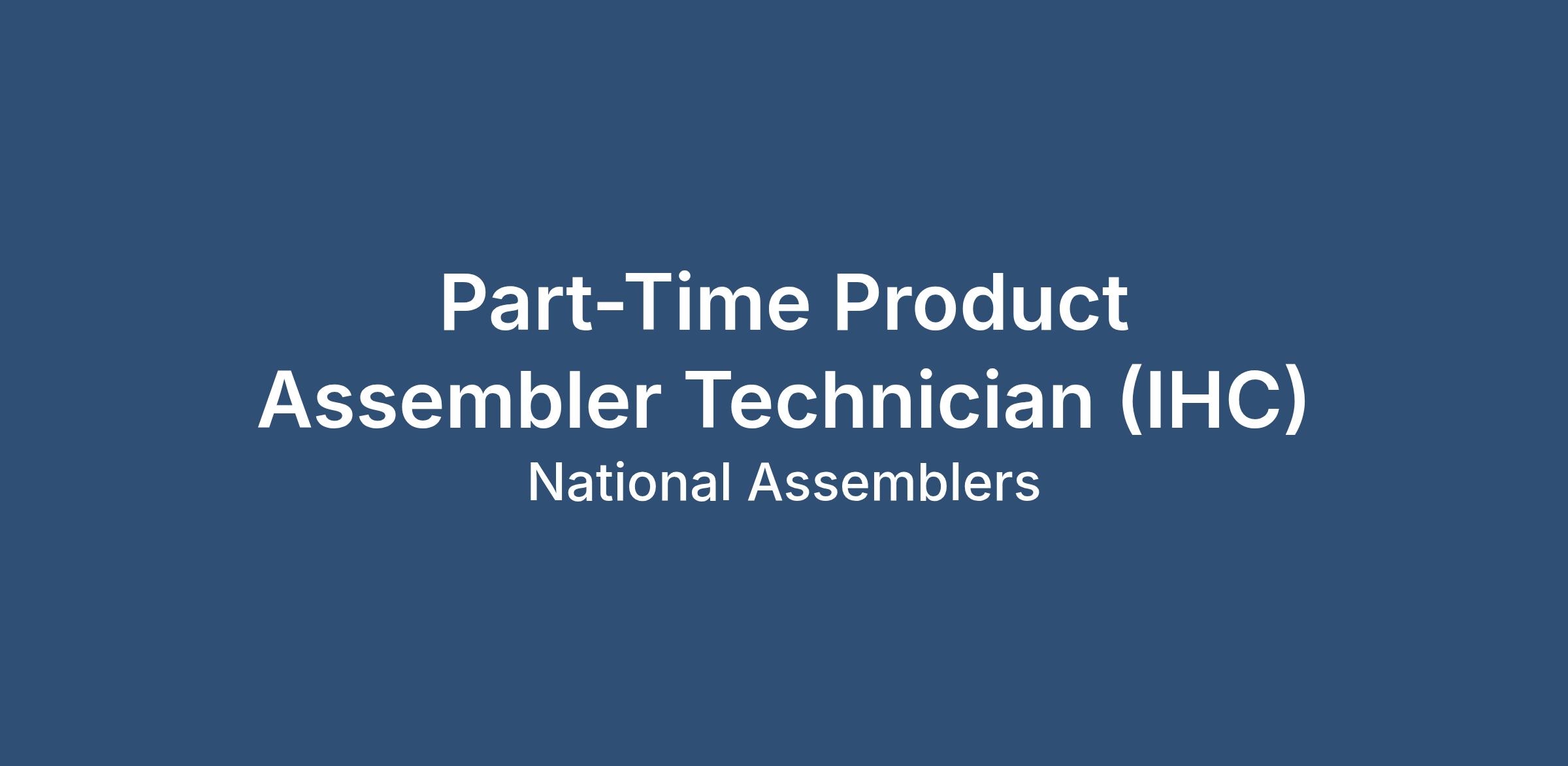Part-Time Product Assembler Technician (IHC)