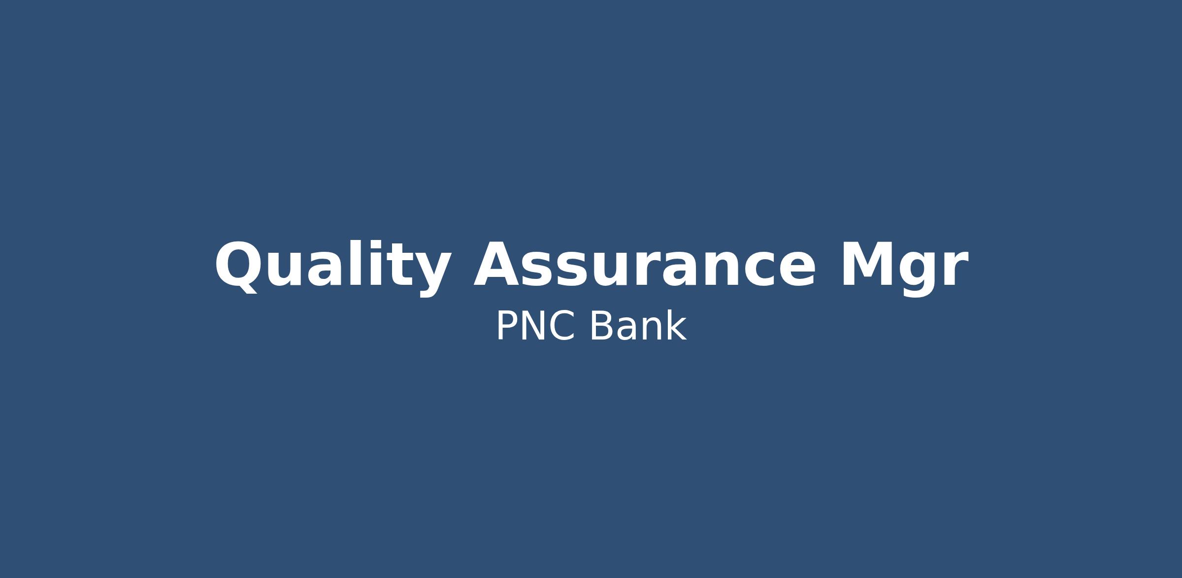 At PNC, our people are our greatest differentiator and competitive advantage in the markets we serve. We are all united in delivering the best experience for our customers. We work together each day to foster an inclusive workplace culture where all of our employees feel respected, valued and have an opportunity to contribute to the company’s success. As a QA Manager within PNC's C&IB organization, you will be based in Pittsburgh, PA or Lakewood, CO or Dallas, TX