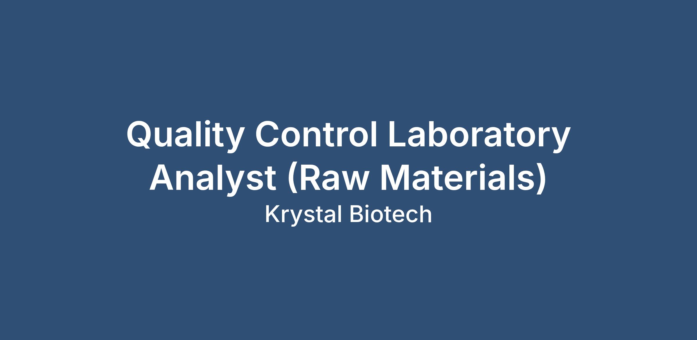 Krystal Biotech, Inc is seeking a highly motivated Quality Control Analyst who will be responsible for in-house raw materials and product testing for the use in the manufacture of clinical and commercial drug products.